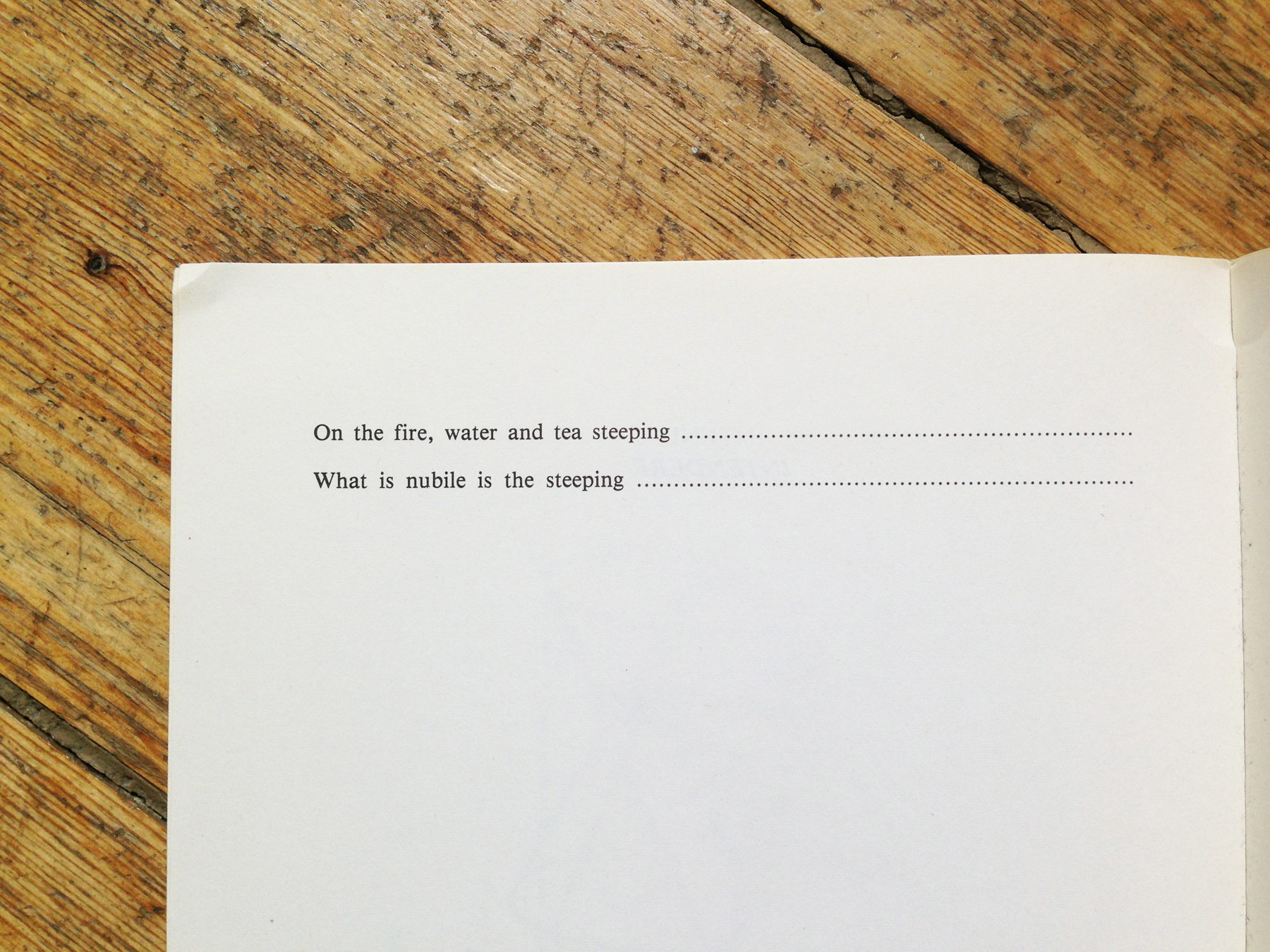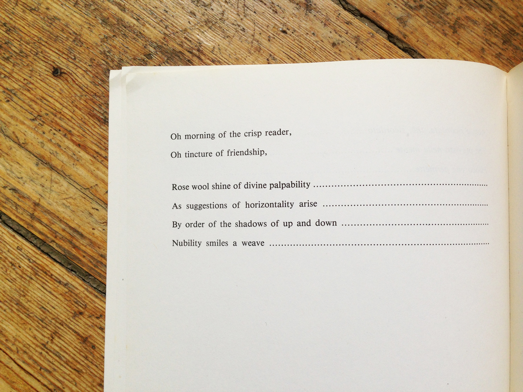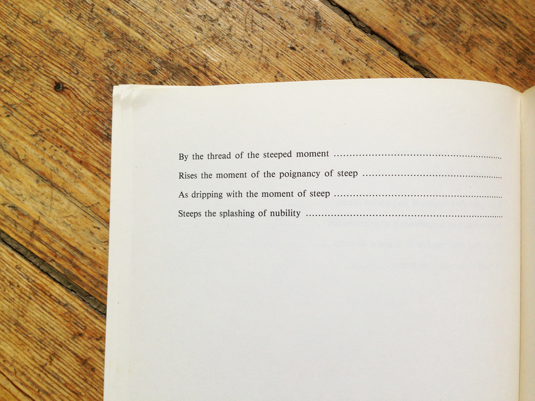 The long unfindable work INTEND (1973) by Madeline Gins, a work of pre-procedural lyricism, hand-republished here in foto-copy.