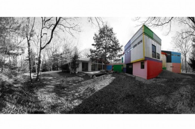 All of the photographs in this section were taken at Bioscleave House, an experimental art-science perceptual research station, designed by Arakawa and Gins and located in East Hampton, NY. They shouldn’t be approached as documentary photographs however, because my intention in choosing this site was to use it as it in the way it was designed to be used, in my case as a location for creating experimental photographic artworks that model different aspects of visual perception.